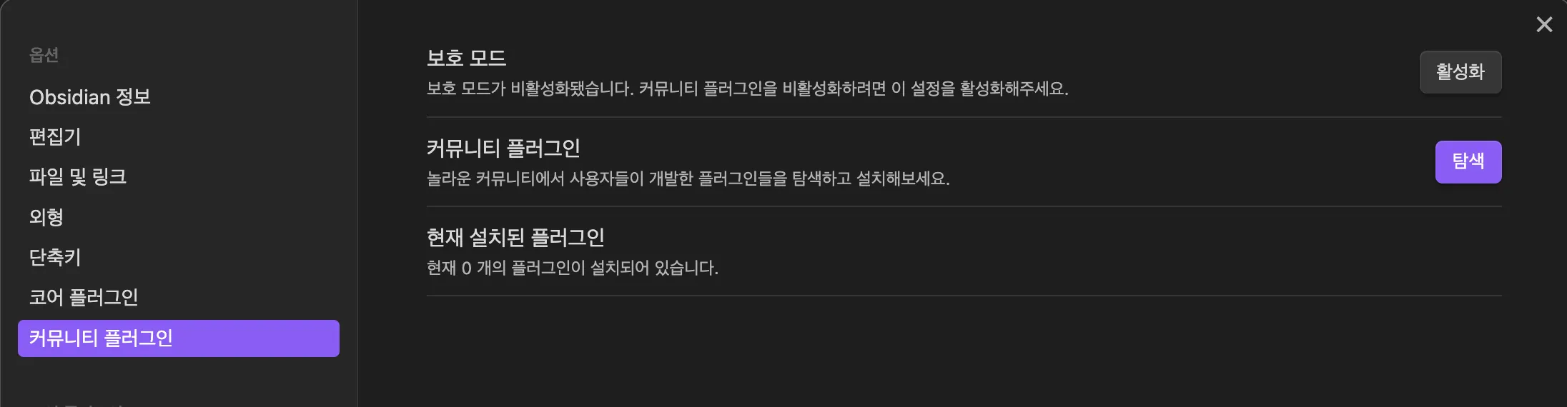 우선 설정 메뉴에서 ‘커뮤니티 플러그인’을 사용설정