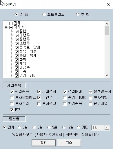 - 강의에서 전략의 조건을 모두 구현하는 과정이 따라하기 어려워서, 한국투자증권 HTS의 조건검색을 설정후 결과를 활용하는 방법으로 구현